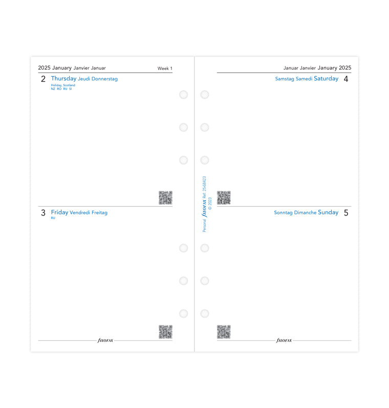 Two Days on One Page Diary Personal 2025 | English, French, German